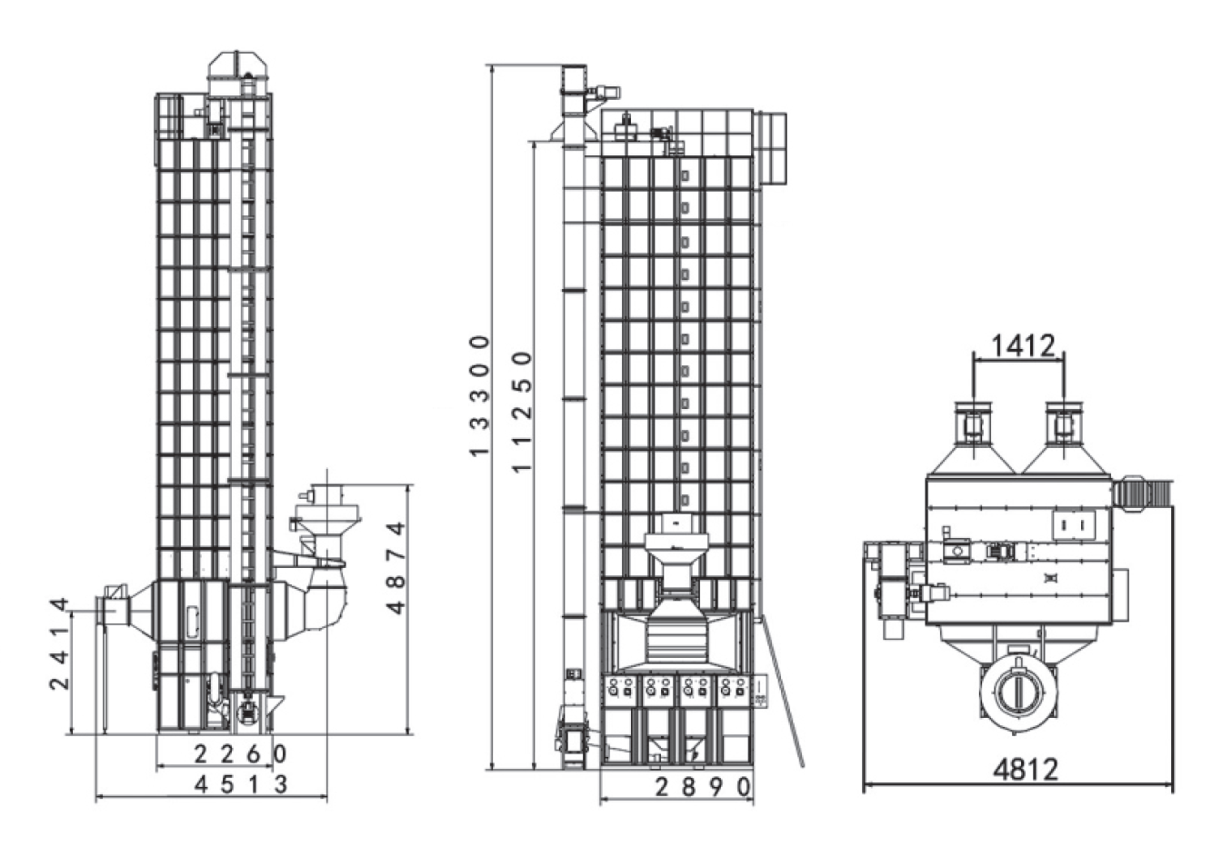 斜流式大风机:采用斜流式大型高效排风机,比传统离心风机风量大、效率高,且能保证烘干后的稻谷达到常温要求。